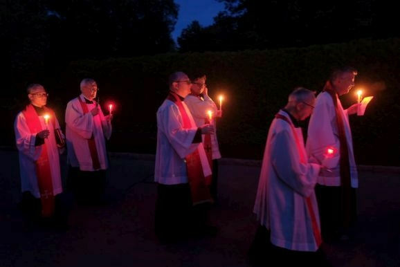 Am vierten Stationsaltar in Reinstein wird dann die Lesung nach Markus 15, 42-46 erfolgen, über die Grablegung Jesu durch Josef von Arimathäa. „Josef kaufte ein Leinentuch, nahm Jesus vom Kreuz, wickelte ihn in das Tuch und legte ihn in ein Grab, das in einen Felsen gehauen war. Dann wälzte er einen Stein vor den Eingang des Grabes.“ Diese Lesung samt Fürbitten wurde bei der Lichterprozession am Marienbrunnen verlesen.