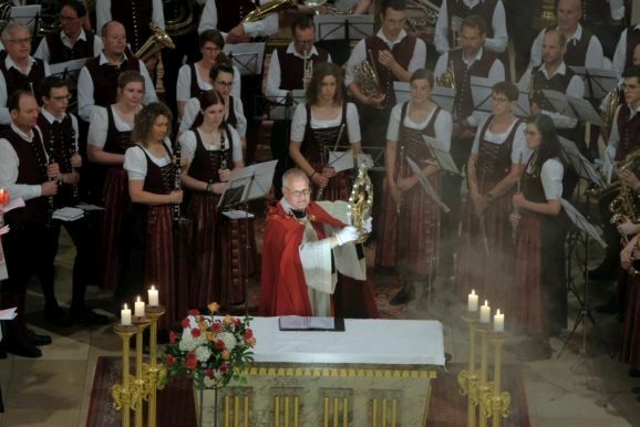 Zum Abschluss in St. Verena spielte die Stadtkapelle nach dem obligatorischen „Großer Gott wir loben Dich“ noch zwei weitere Stücke, mit der Konsequenz, dass die Kirche bis zum Verklingen des letzten Tones noch voll besetzt blieb und es danach prasselnden Beifall gab.