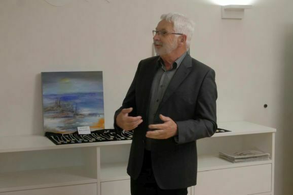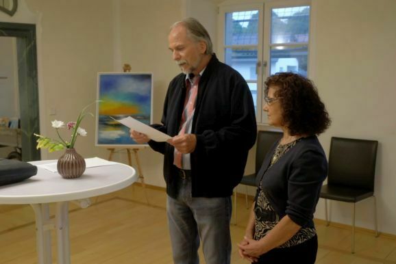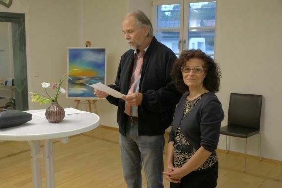 Ralf Geyer, der Ehemann von Angy Geyer brachte in seiner Laudatio den Besuchern das Werk der quirligen Künstlerin nahe.