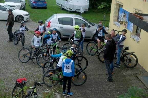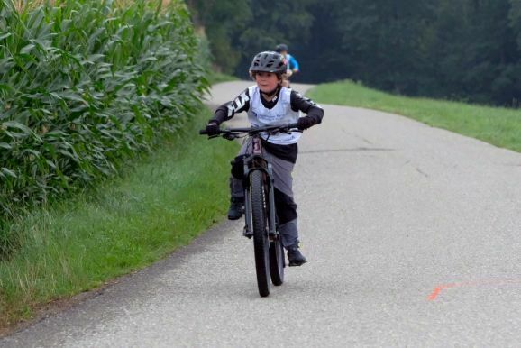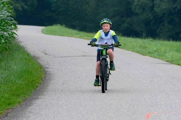 Nach dem Probeschießen und einer Erklärung des Rennablaufes, erfolgte beitrockenem Wetter und angenehm frischen Temperaturen der Start am oberen Parkplatz des Schützenhauses. Nun galt es für die 14 Kids drei Runden von ca. 2,1 km mit Ihren Mountainbikes durch den Wald zurücklegen und dazwischen zweimal mit dem Luft-/Lasergewehr möglichst viele der 5 schwarzen Scheiben auf weiß umklappen zu lassen.