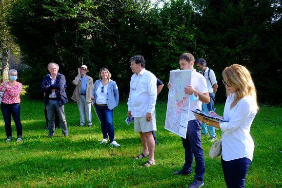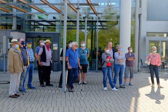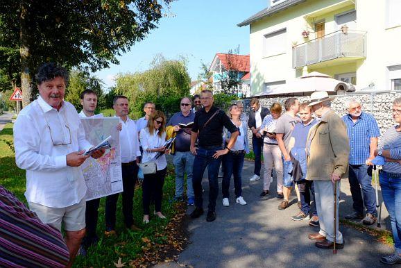 Johann Senner, Chef des Planungsbüros Planstatt Senner konnte gemeinsam mit Bürgermeisterin Alexandra Scherer und Wolfgang Wahl von Rapp Trans (Verkehrsplanung) beim Ausgangspunkt Kurhaus viele Gemeinderäte, aber auch zahlreiche interessierte Bürger begrüßen.