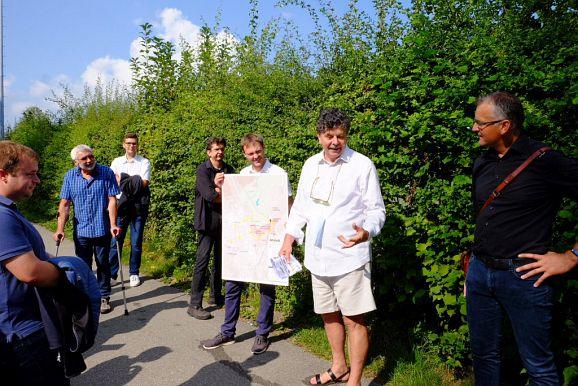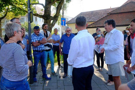 Dort umriss er kurz die Aufgaben, die von Stadt und Gemeinderat für den Zeitraum bis 2035 in den Bereichen Leben, Mobilität und Schulen angegangen werden sollten, ehe sich die rund 30 Teilnehmer auf den Weg zum Klosterplatz machte, der ersten Station des insgesamt 8 Stationen umfassenden Rundganges.