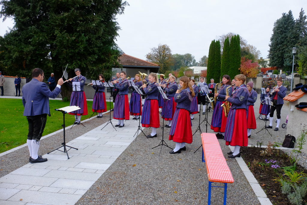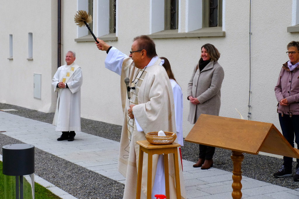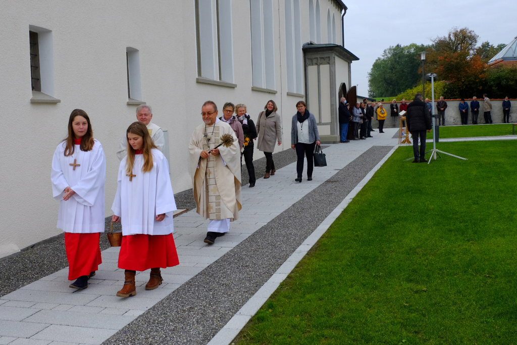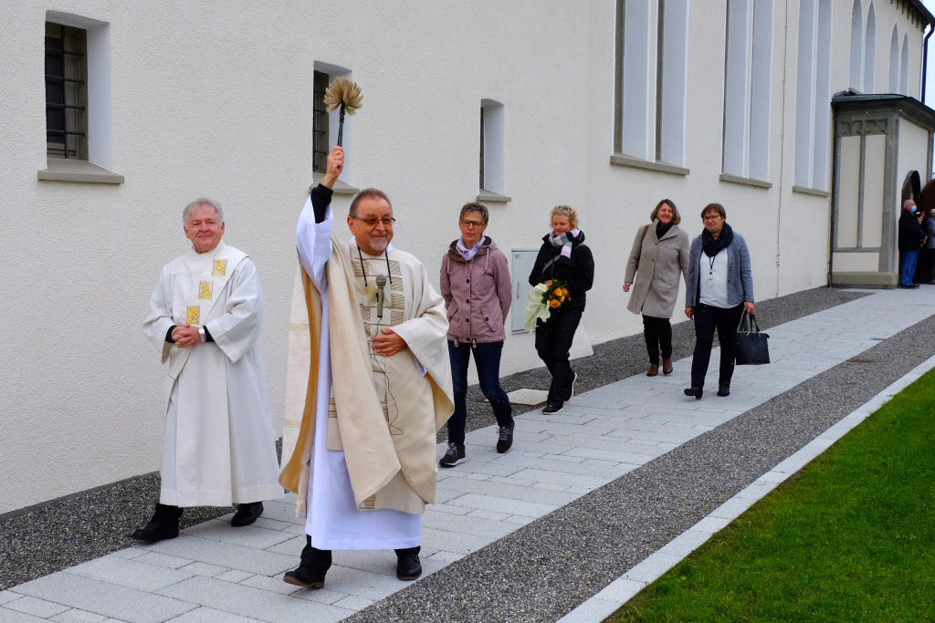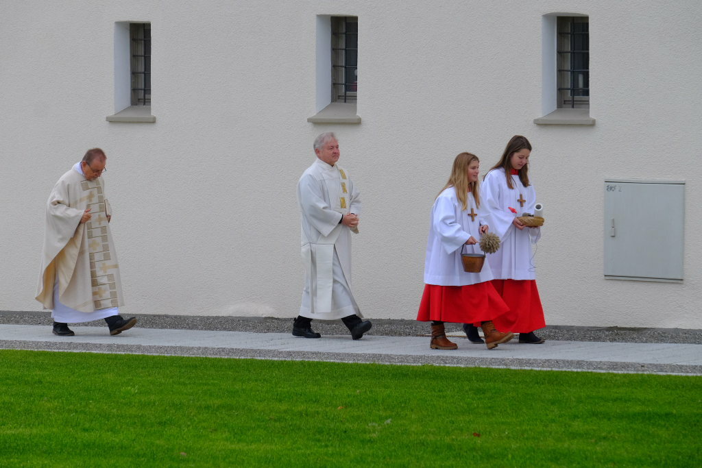 Und während Pfarrer Notz die von Planstatt Senner rund um die Kirche neuangelegten Wege segnete, spielte die Musikkapelle ganz passend „Großer Gott wir loben Dich.“