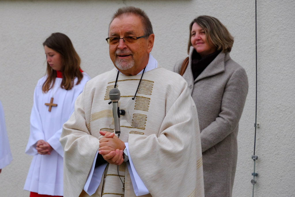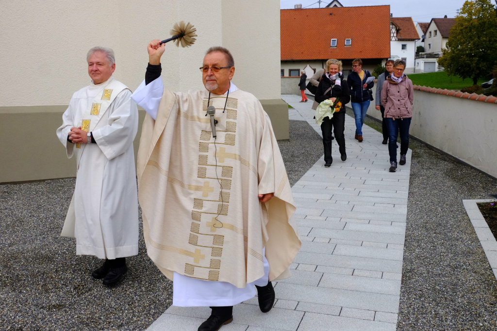 Aber Maucher ging auch auf die Kosten der Sanierung ein: Das gesamte Projekt werde 1,390 Mio. € kosten, wovon die Diözese 1,142 Mio. € übernehmen wird. 90.000 € sind an Spenden vorgesehen. Sie dankte auch den Nachbarn, die viel Geduld gezeigt und oft die Handwerker bei ihrer Arbeit unterstützt hätten.
