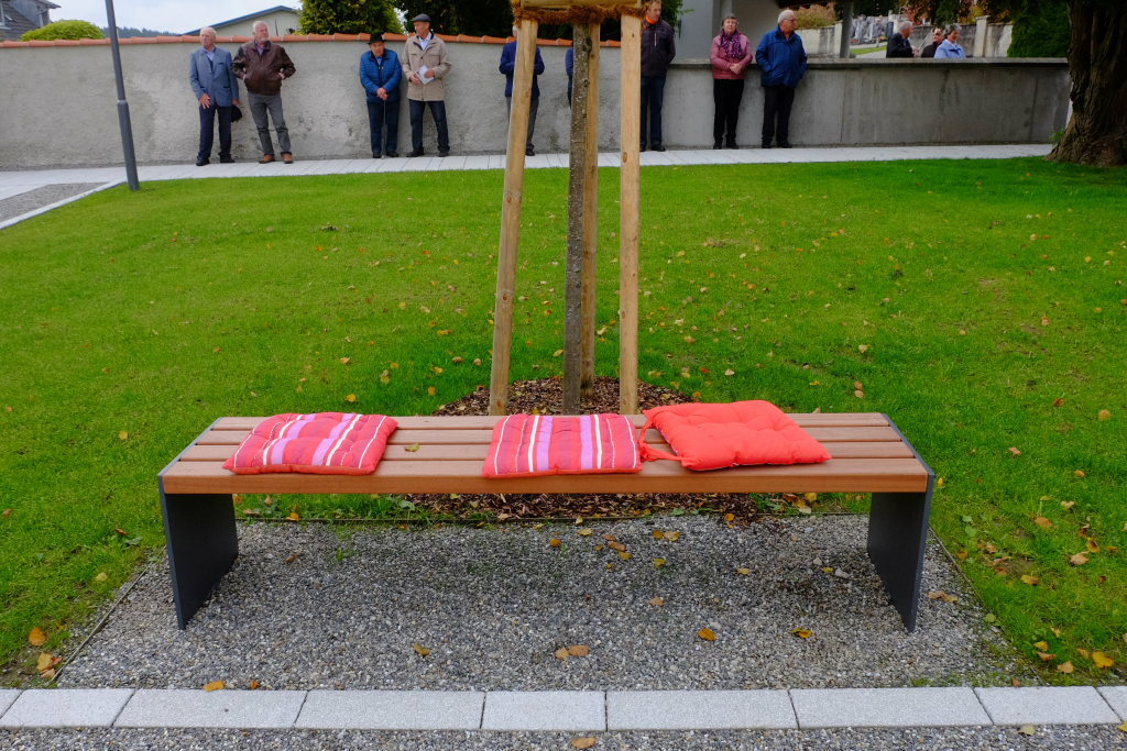 Pfarrer Notz, sagte, ehe er zur Segnung schritt: „Heute ist ein Tag der Dankbarkeit.“ Er habe den Kirchengemeinderat einfach „machen lassen“. Nur ab und zu habe er mal unterschreiben dürfen. In Unterschwarzach gebe es viel Kostbares – er lobte u.a. auch die Ortsvorsteherin und Bürgermeisterin Scherer für die neue Ortsmitte – aber etwas besonderes sei „das Gemeinwohl in unserem Herzen“. Dieser Platz für Begegnungen gehöre dazu. Ein besonderes Dankeschön ging auch an den Kirchengemeinderat und Architekten Bernd Egenter, der selbst krankheitsbedingt nicht dabei sein konnte, aber da er nur wenige Meter entfernt wohne, den ihm gebührenden Applaus sicher mitbekäme.