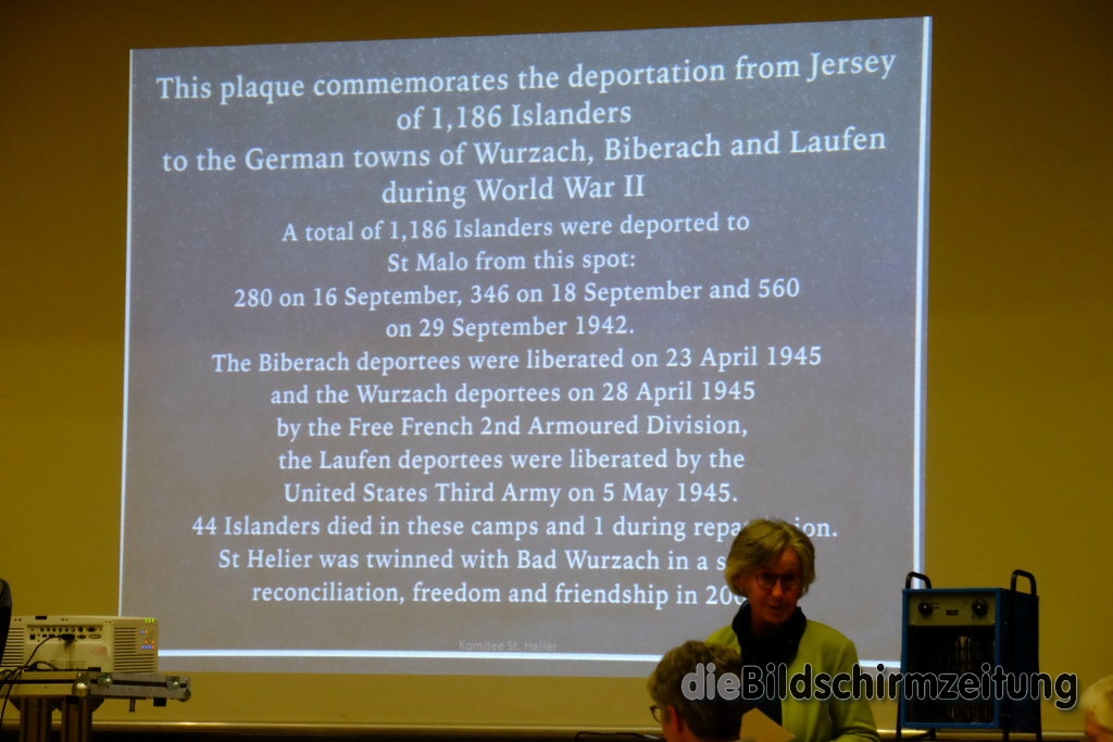 Für Gisela Rothenhäusler war das 2019 „ein relativ ereignisloses Jahr“ . Neben dem Schüleraustausch gab es auf Jersey aber im September mit der Enthüllung einer Gedenktafel zur Erinnerung an die Deportation und Internierung in Bad Wurzach ein echtes Highlight. Obwohl fast alle Veranstaltungen für 2020 abgesagt wurden, hatte Rothenhäusler dennoch einiges zu berichten. Einige der Internierten sind in dem Jubiläumsjahr zur Befreiung verstorben, darunter einer der sogar gerne in Bad Wurzach begraben werden wollte. Dank des SWR-Fernsehens kam es doch zur ursprünglich im Rahmen des Besuchsprogrammes der Jersey-Delegation geplanten Ehrbezeugung an den Gräbern der in Bad Wurzach verstorbenen Internierten. Die auch in den Medien von Jersey mit einem Interview von Altbürgermeister Helmuth Morczinietz ihren Niederschlag fand. Nebenbei fand das Wurzacher Schloss in einem Buch einer Jersianerin über die Schlösser Baden-Württembergs Erwähnung. Im August besuchte eine Motorradfahrergruppe aus Jersey Bad Wurzach, unter ihnen Sohn und Enkel eines Internierten. Der Sohn war 2005 aus Neugierde erstmals nach Bad Wurzach gekommen und vom herzlichen Empfang sehr beeindruckt gewesen. „Kann es ein größeres Kompliment für die Freundschaft geben?“ stellte Rothenhäusler der Versammlung die rhetorische Frage zum Abschluss ihres Vortrages.