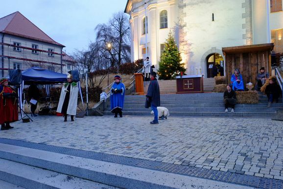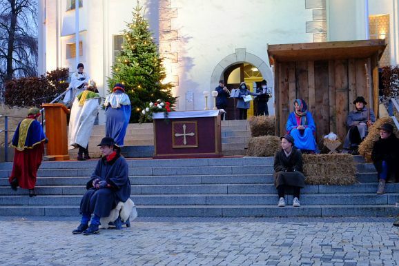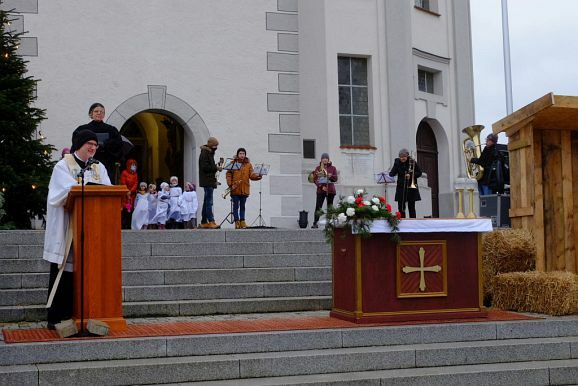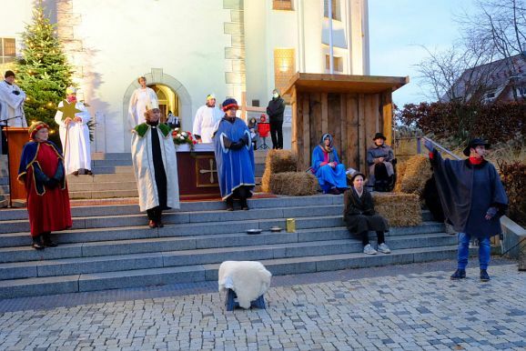 Mit dem obligatorischen „Stille Nacht“ endete auch das zweite Krippenspiel an diesem besonderen Heiligabend auf dem Klosterplatz, zwar ohne Gesang, aber verbunden mit der Hoffnung auf ein baldiges Ende der Einschränkungen.
