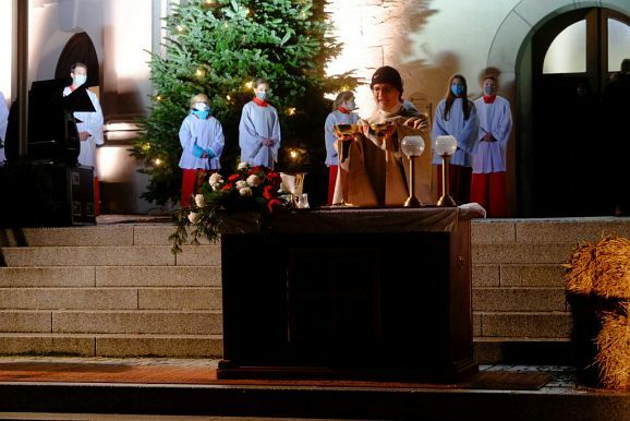 Bad Wurzach - Um möglichst vielen Gemeindemitgliedern die Gelegenheit an Heiligabend für einen Gottesdienstbesuch zu bieten, hat die Kirchengemeinde St. Verena den Familiengottesdienst und die Christmette an Heiligabend unter freien Himmel auf den Klosterplatz verlegt.