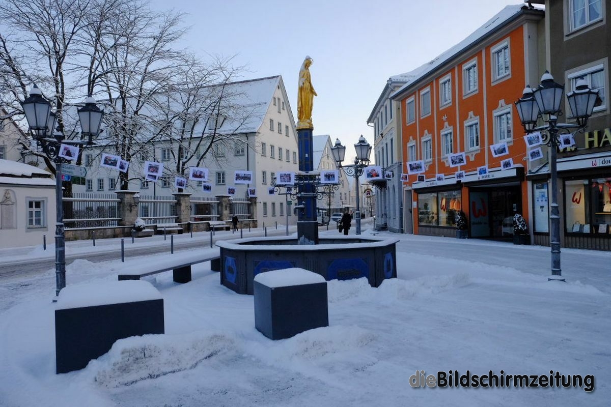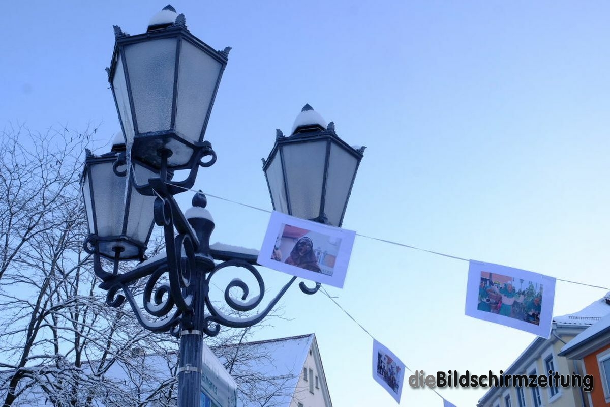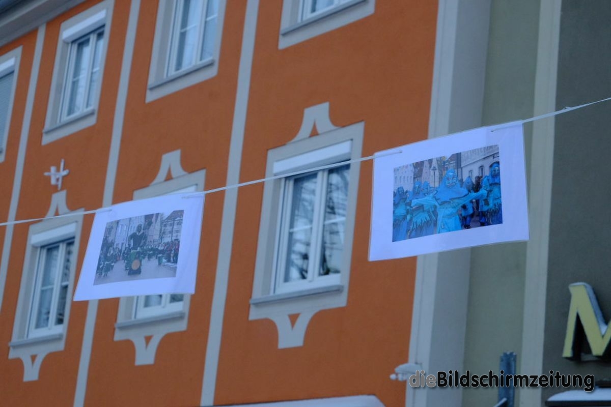 Sie hat Wort gehalten, denn morgens um kurz nach acht traf das äußere Zeichen dafür, dass die Narren auch in Zeiten von Corona ein wenig die Macht übernommen haben, beim Stadtbrunnen ein. Diesen hatten am Abend zuvor bereits unbekannte Narren zur Bilder-Galerie umgestaltet. An den Leinen, an welchen die Narren am Aschermittwoch für gewöhnlich ihre von Fasnet geleerten und frisch gewaschenen Geldbeutel zum Trocknen aufhängen, hatten sie Bilder vom letzten Wurzacher Narrensprung aufgehängt.