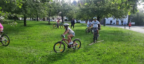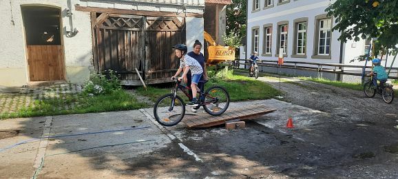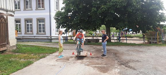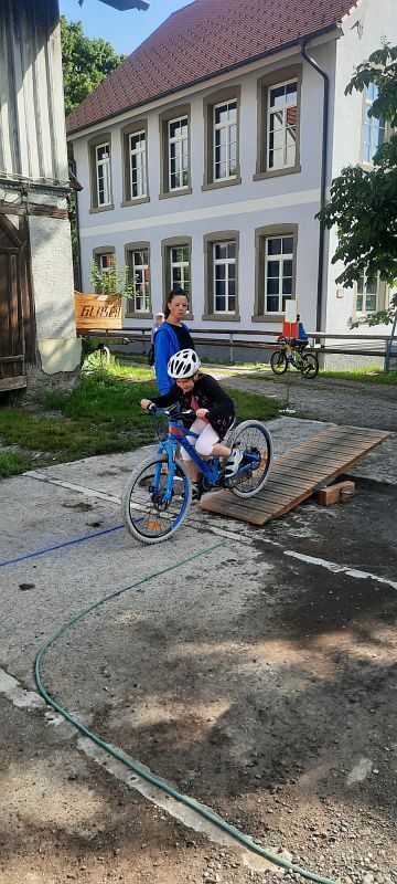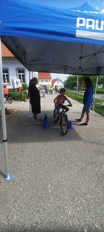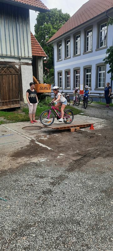 Nach einer über einjährigen Terminverschiebung konnte dieses Projekt nun endlich am 22.06 an der Grundschule Eintürnen verwirklicht werden. An sechs Stationen wurde unter Mithilfe von Eltern und Lehrerinnen auf verschiedenen Untergründen gebremst, Slalom gefahren, über eine Wippe und Holzhindernisse geradelt, das Linksabbiegen geübt und sogar mit dem Fahrrad Roller gefahren. Die Kinder hatten sichtlich Freude an diesem besonderen Schulvormittag und waren zum Ende des Aktionstages müde, aber dennoch stolz auf ihre Leistungen. Von der Radhelden Koordinatorin Frau Bachmann gab es zur Belohnung für die Pausenkiste zum Abschluss noch einen Moon-Hopper.