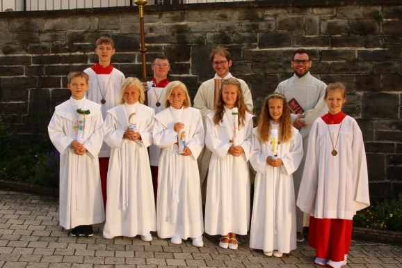 Nachdem die Kinder von Pastoralreferent Michael Maier im Gemeindehaus in Seibranz auf den Festgottesdienst eingestimmt wurden, empfing der Musikverein die Kinder vor der Kirche. Den Festgottesdienst um 10.30 Uhr zelebrierte Vikar Manuel Hammer.
