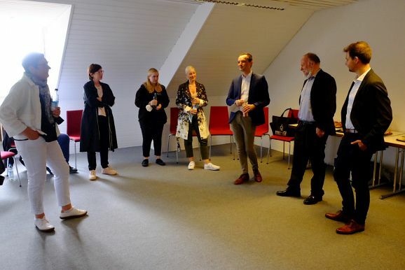 „Die Stadt hat die Räume von der Stiftung Wurzacher Schloss zunächst für 10 Jahre angemietet“, erzählt Wetzel. „Die Stiftung ist uns bei der Renovierung der Räume sehr entgegen gekommen,“ beschreibt sie das partnerschaftliche Verhältnis. Und Petra Springer berichtet den Besuchern, dass die Lehrer von der Akustik der Räume sehr begeistert sind und davon, wie sie ausgetestet hatten, dass die direkt unter der JMS liegenden Kunsträume des Salvatorkollegs wirklich nicht gestört werden: „Am Ende hatte ich als die ausführende Posaunistin zwar keinen Ansatz mehr, aber wir konnten nun sicher sein, dass dort unten kaum etwas zu hören ist, “ erzählt sie mit einem Schmunzeln.