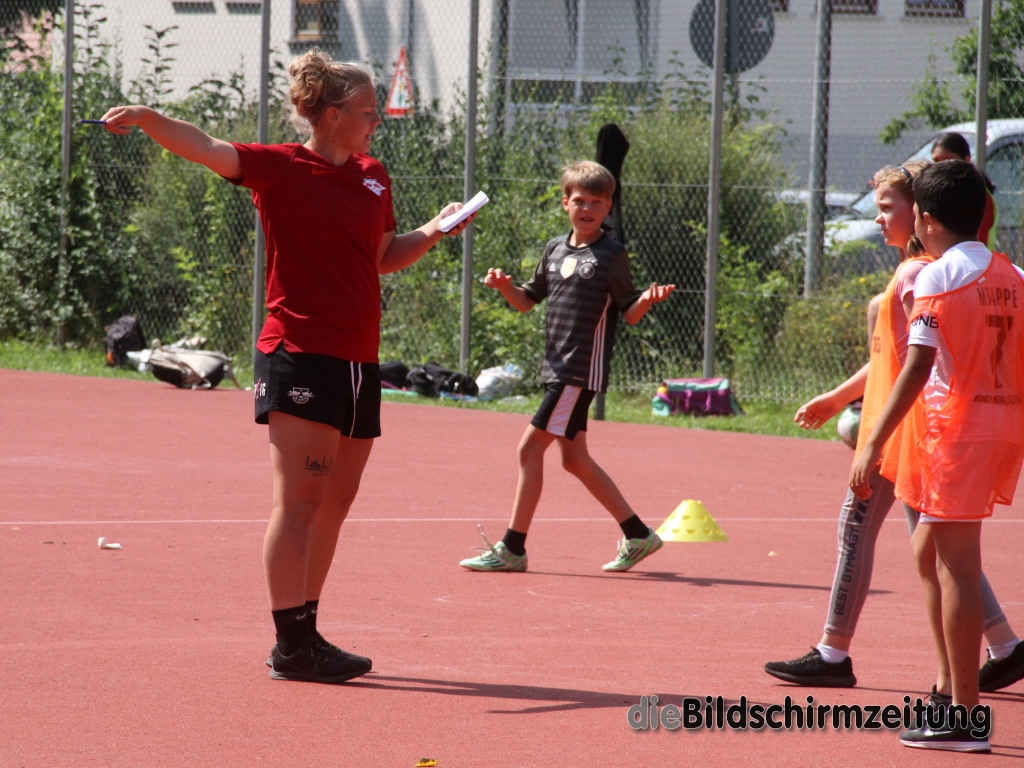 Das Trainer-Duo Lucy und Marcel machte nach den Aufwärmübungen mit den Kindern zunächst Koordinationsübungen, wobei ihnen sofort die in den letzten Monaten entstandenen körperliche und koordinative Defizite ins Auge fielen. Mit Lucy wurden die Grundschüler in Bad Wurzach erstmals auch von einer Trainerin betreut. Sie ist noch als Spielerin bei der Damenmannschaft von RB Leipzig aktiv, die in diesem Jahr mit dem Aufstieg in die erste Bundesliga liebäugelt. Sehr positiv sahen die Trainer und der Schulsozialarbeiter aber die Tatsache, dass die Kinder durch die Bank sehr freundschaftlich miteinander umgingen.