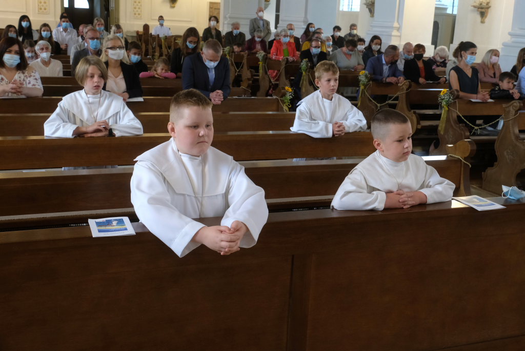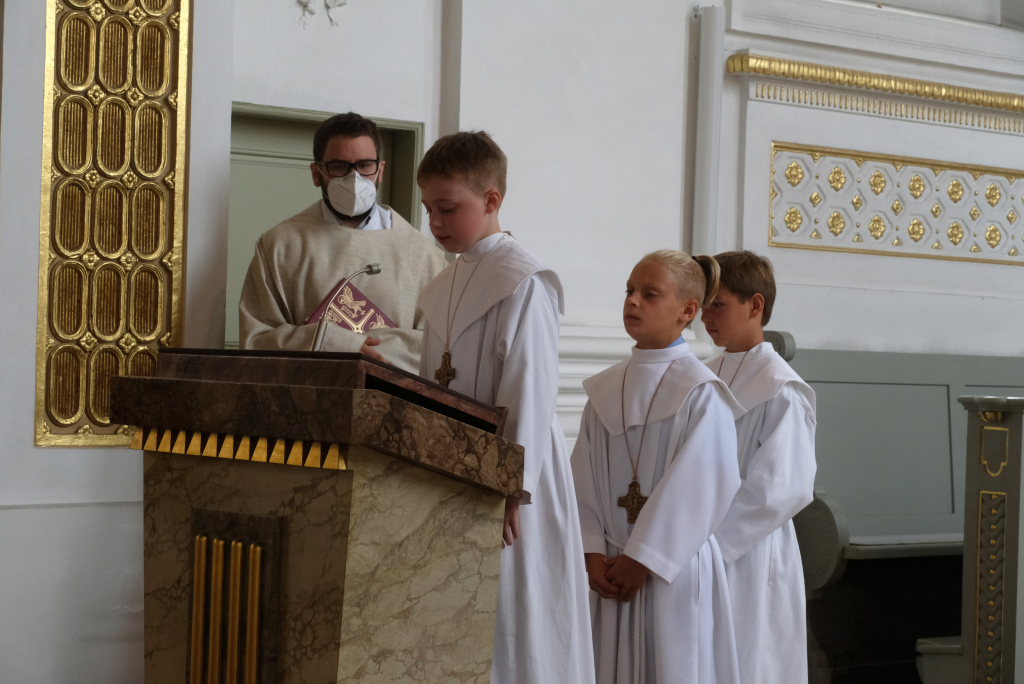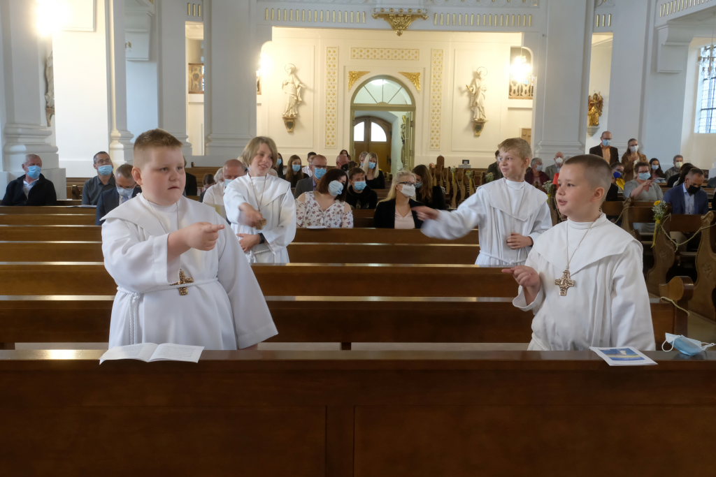 Nach dem Lied „Großer Gott wir loben Dich“ verabschiedeten sich die Kommunionkinder, die sich mit Begrüßung, Kyrie, dem Mottolied „Ich vertraue Dir“ und dem Dankgebet aktiv an der Gestaltung der Gottesdienste beteiligt hatten.