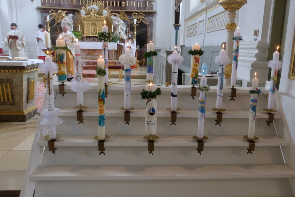 Der Pastoralreferent fragte die Kinder, wann sie das letzte mal eine Mutprobe gemacht haben. Eine Mutprobe ist immer eine außergewöhnliche, oft auch eine gefährliche Sache, so wie eben jene von Petrus. Aber Jesus ist da, wenn wie es für Petrus und die Jünger auf dem See brenzlig wird und er spricht jenen wunderbaren Satz, der so häufig wie kein anderer in der Bibel steht: „Fürchtet Euch nicht!“ sagt er zu den angesichts des Sturmes ängstlichen Jüngern im Boot und zu Petrus: „Vertrau mir, ich bin da.“ So hoffe er, sagte Maier an die Kinder gewandt „dass ihr spürt, dass Jesus da ist und ihr euer ganzes Leben diese Erfahrung macht.“