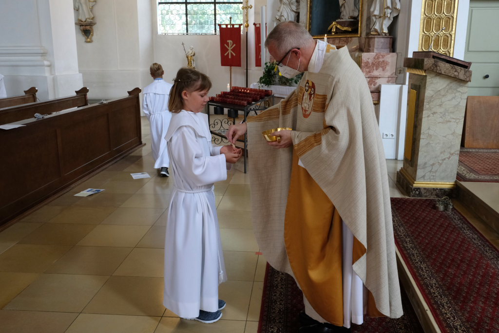 Nachdem die Kinder erstmals den Leib Christi empfangen hatten, wünschten Pfarrer Maier und der Pastoralreferent, dass sie diesen auch zukünftig noch viele Male empfangen mögen.