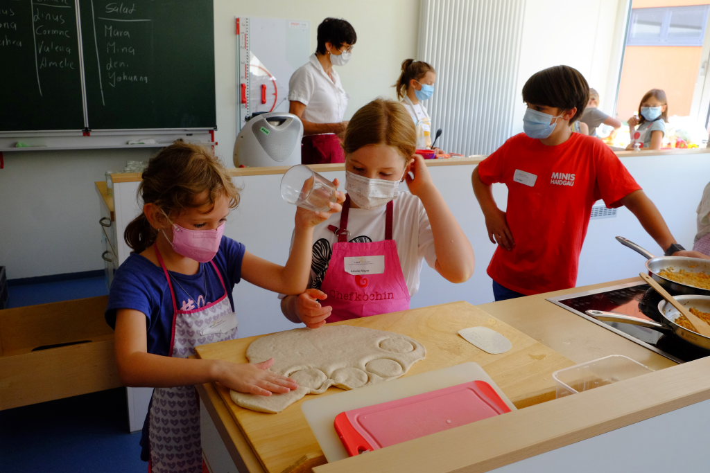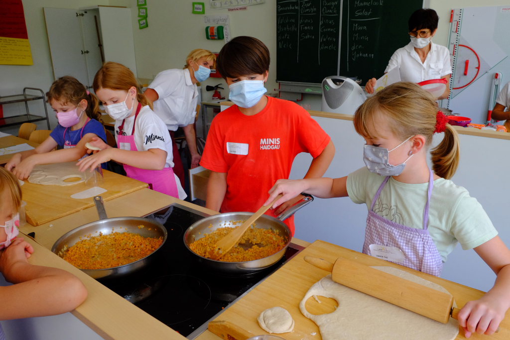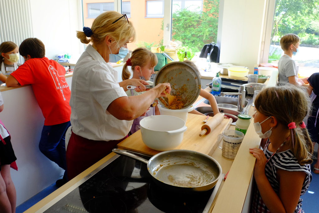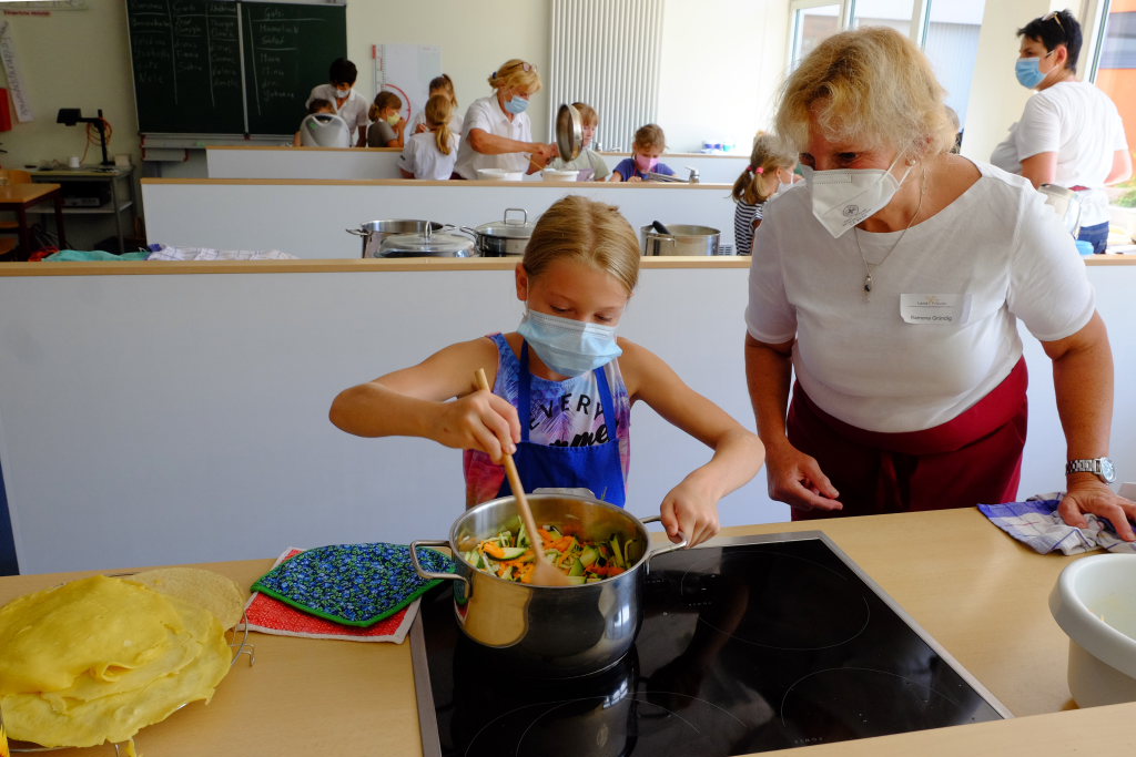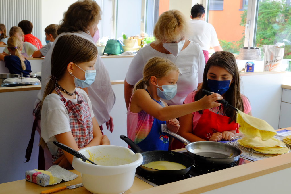 Bad Wurzach - 15 Kinder aus der ganzen Großgemeinde kamen zu einem Kochkurs der besonderen Art in die Küche der Werkrealschule, um mit fünf Landfrauen um ihre Vorständin Gisela Brodd, zu Kochen zu Backen und zu Genießen.