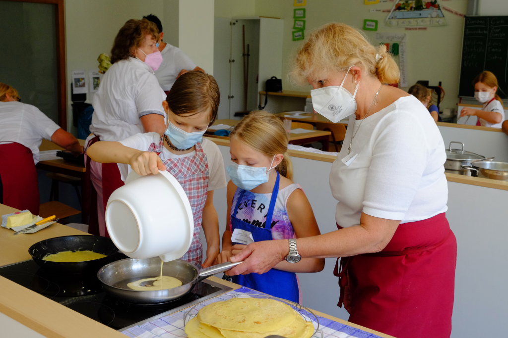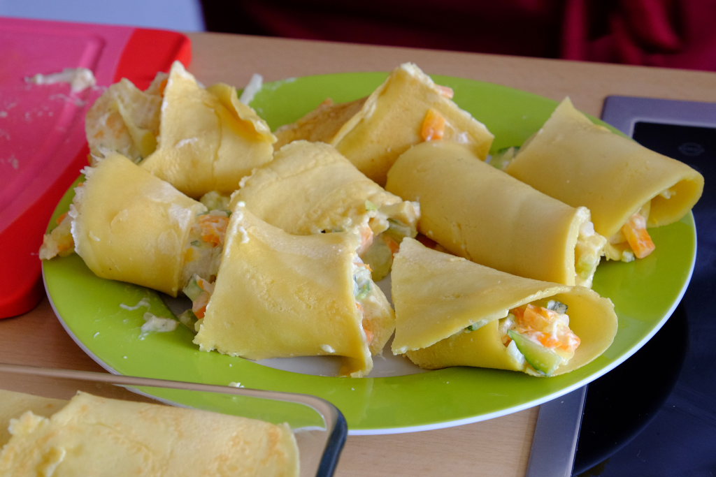 Pfannkuchen mit Gemüsefüllung oder süß mit – natürlich Erdbeerfüllung – standen ebenso auf der Rezeptliste, welche die mit nach Hause nehmen durften.