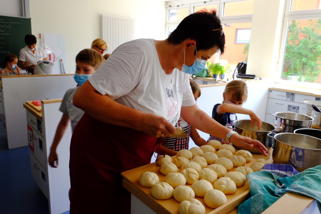 Ganz begeistert zeigte sich Gisela Brodd davon, wie die Kinder – nachdem sie es einmal vorgemacht hatte, die Hefezöpfe dann selbst zopften.