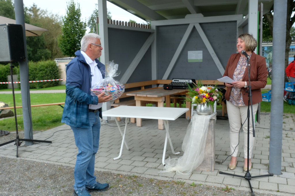 Auch Bürgermeisterin Alexandra Scherer sprach den Ehrenamtlichen ihren Dank aus und übergab an Robert Müller eine große Schale mit „Nervennahrung“. Sie erinnerte sich noch gut an ihren Bürgermeisterwahlkampf im Hauerzer Adler, bei dem das Freibad und dessen Erhalt das Thema Nummer eins gewesen war.