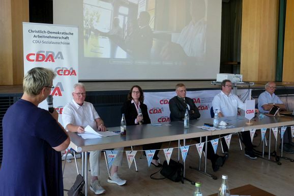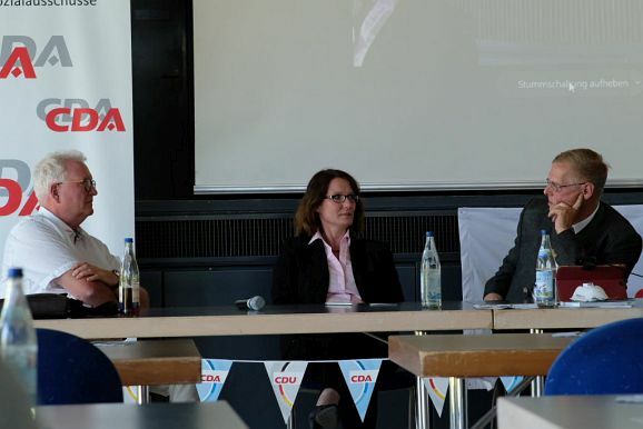 Das CDA-Bundesvorstandsmitglied Karin Möhle moderierte gemeinsam mit dem Bezirksvorsitzenden Markus Schraff und dem Kreisvorsitzenden Fridolin Scheerer die Diskussionsrunde. Doch auch im Publikum saßen mit MdL Raimund Haser, dem ehemalige Bundestagsabgeordneten Waldemar Westermayer und später auch noch MdB Josef Rief einige politische Schwergewichte aus der Region, während Klaus Schütt als stellvertretender Bürgermeister und langjähriger CDU Ortsverbandsvorsitzender die Bad Wurzacher Farben vertrat.