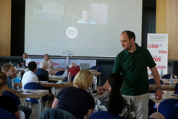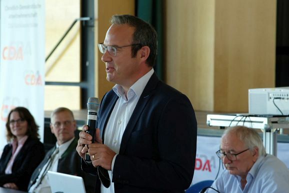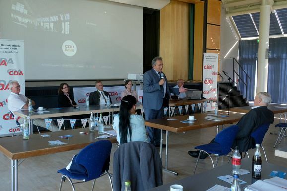 Der CDA-Kreisvorsitzende Fridolin Scheerer prangerte in seinem Statement ebenfalls die überbordende Bürokratie an: „Die Azubis und Betriebe brauchen inzwischen einen Anwalt, um zu verstehen was die Ämter wollen.“ er kritisierte auch die Ausstattung der Schulen: „Drittklässler sind in Argentinien besser ausgestattet als hierzulande.“ Er habe auch den Eindruck, dass das deutsche Bildungssystem an die Wand gefahren werde.