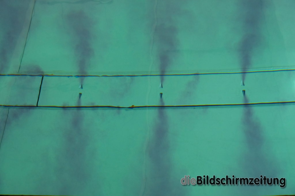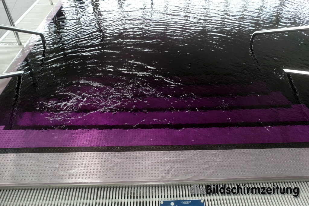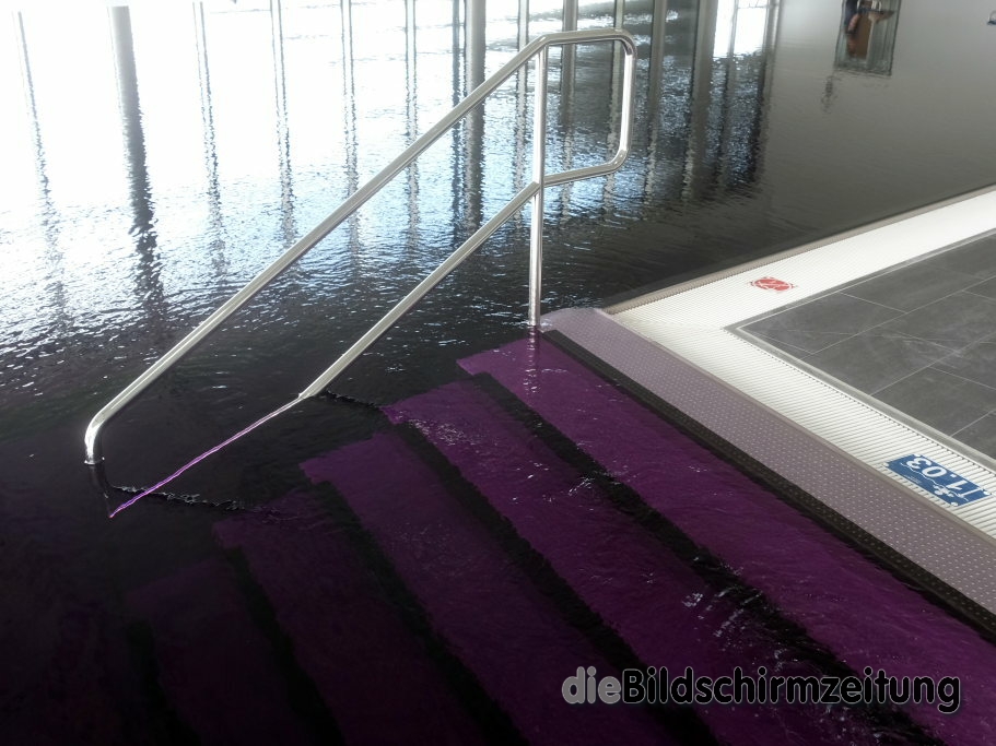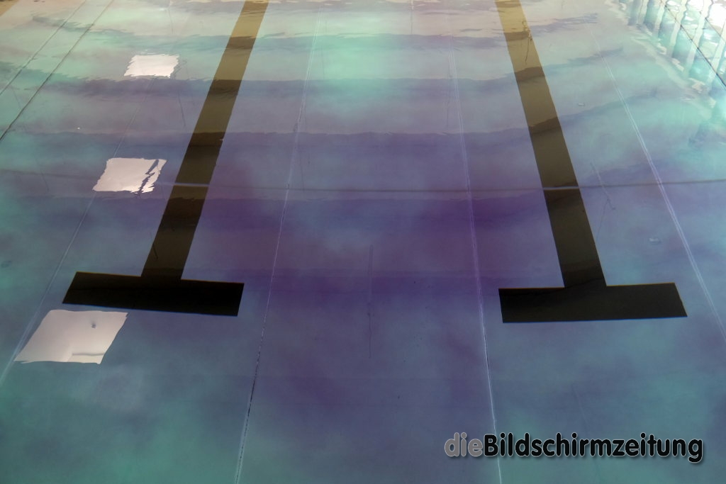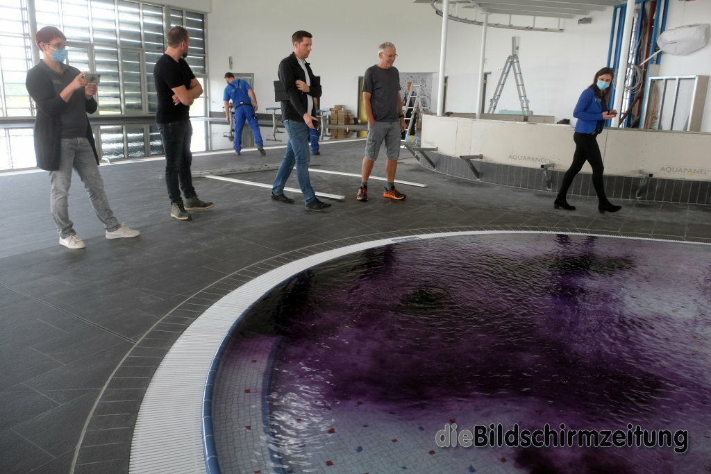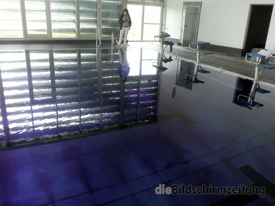 Wenn alles glatt läuft, können Schulen, Vereine usw. das neue Hallenbad am Grünen Hügel bald für den praktischen Testbetrieb in Beschlag nehmen. Die Techniker jedenfalls zeigten sich über den Färbetest zufrieden.
