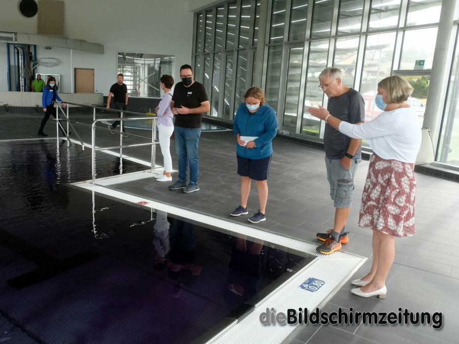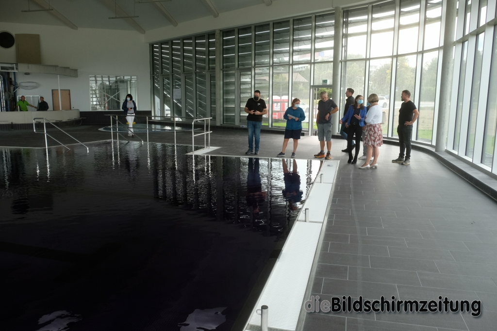 Bei einer Führung durch die hochmoderne Badtechnik erläuterte Annika Steinhauser, wie das Wasser in den beiden Becken in einem geschlossenen Kreislauf wiederaufbereitet wird. Bürgermeisterin Scherer und Steinhauser zeigten sich sehr optimistisch, was die Gewinnung und Ausbildung von Fachangestellten für Bäderbetriebe angeht: „Mit dem Freibad Hauerz, der Vitalium-Therme und jetzt mit dem neuen Hallenbad mit ihren unterschiedlichen Technikvarianten haben wir die idealen Möglichkeiten, um jungen Leuten eine fundierte Ausbildung bieten zu können.“ Bereits für den Herbst hätten zwei Praktikanten ernsthaftes Interesse gezeigt, konkretisierte Annika Steinhauser die optimistischen Äußerungen zum Thema „selbst ausbilden“.