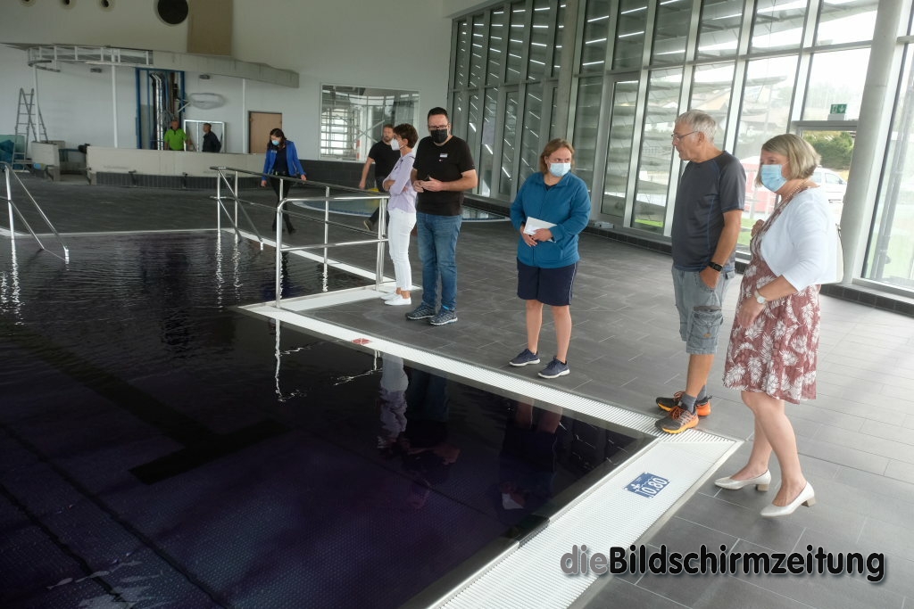 Nach langen (und bangen) Monaten freuten sich Bürgermeisterin Alexandra Scherer, die innerhalb des Kurbetriebes für die Bäder verantwortliche Annika Steinhauser sowie die BWI-Leiterin Johanne Gaipl gemeinsam mit dem Bauleiter und Vertretern der beteiligten Firmen über die in den letzten Monaten erzielten Fortschritte. Die Bürgermeisterin sagte: „Wir biegen mit diesem Großprojekt auf die Zielgerade ein.“ Einen konkreten Eröffnungstermin konnte und wollte sie aufgrund der vielen Unwägbarkeiten, die bisher mit dem Bau einhergingen, jedoch noch nicht verkünden.