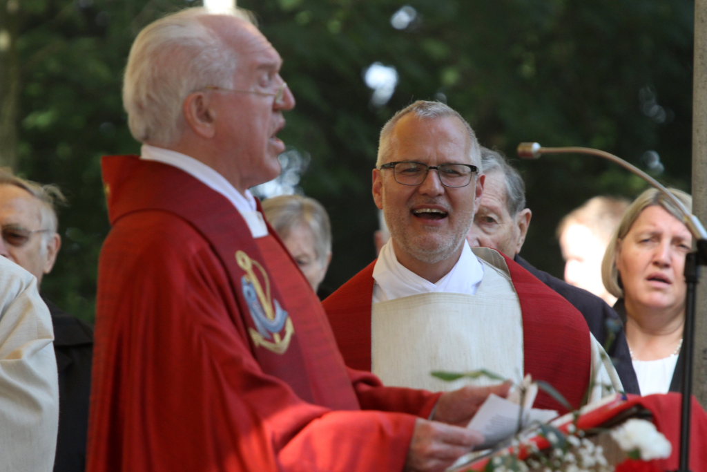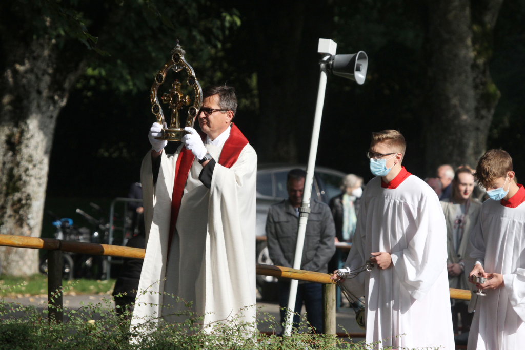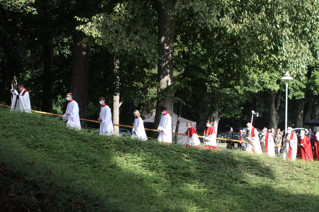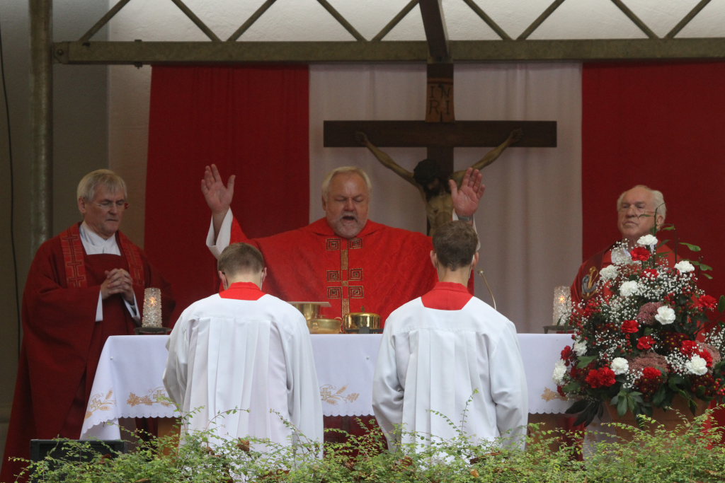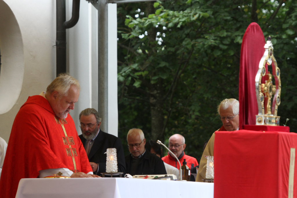 „Wow, das war knapp. Dem Himmel sei Dank, dass Sie nicht im Regen stehen!“ Mit diesen Worten begrüßte Superior Pater Konrad Werder die Gäste und Gottesdienstbesucher zu dem Jubiläumsgottesdienst. Denn wieder einmal hatten die Patres angesichts der Wetterprognosen bewiesen, dass sie auf dem Gottesberg einfach dem Himmel noch ein Stückchen näher sind...