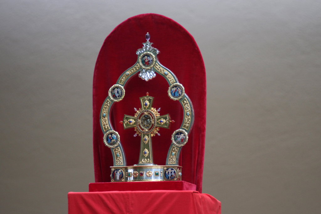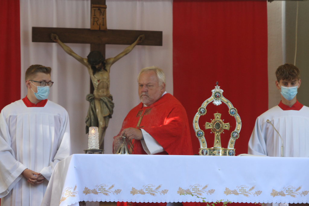 Es war ein erhebender Moment, als die Salvatorianer Patres mit der Heilig-Blut-Reliquie an der Spitze zu den Klängen von „Lobet den Herren“ unter dem Zeltdach bei der Kirche Einzug hielten.