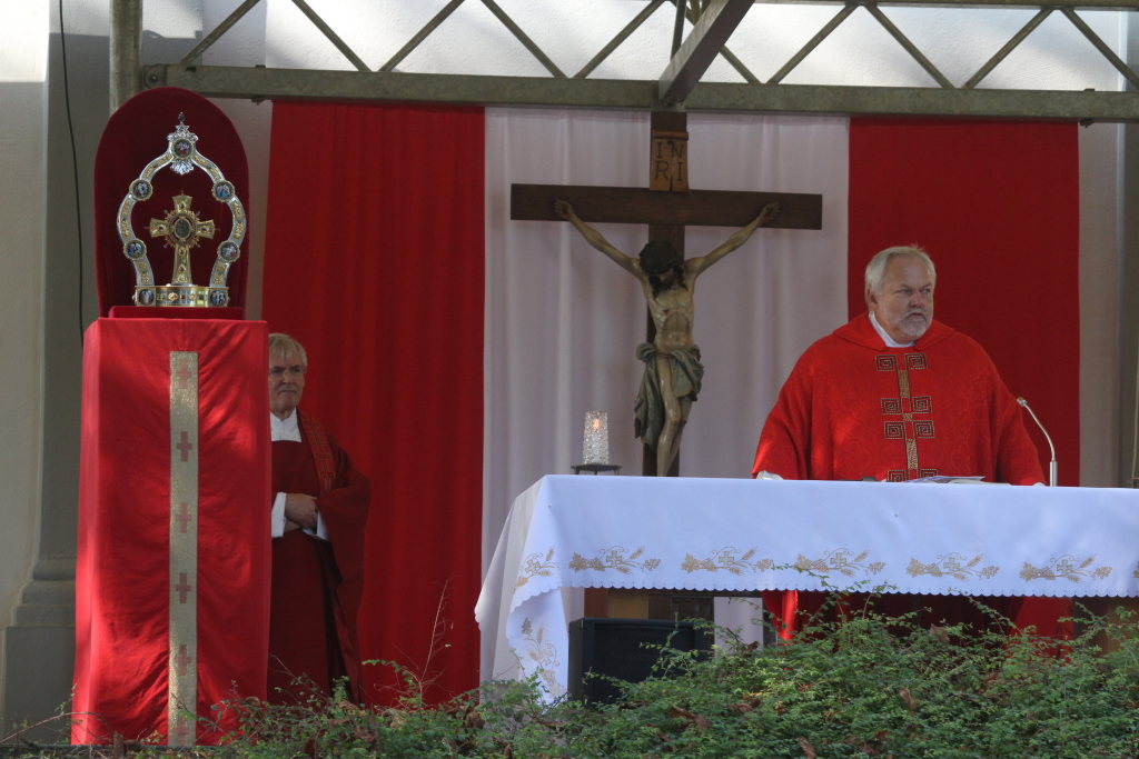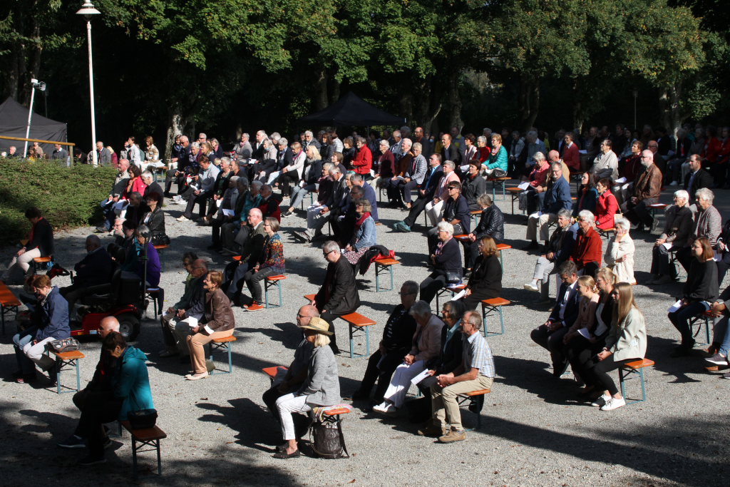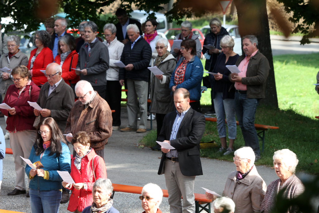 Es wehte an diesem Sonntagmorgen ein Hauch von Heiligblutfest um die Wallfahrtskirche, denn der Gottesdienst fand wie das Pontifikalamt am höchsten Bad Wurzacher Feiertag unter freiem Himmel statt. Und auch die Anzahl der Gottesdienstbesucher konnte sich bei gutem Wetter mit der bei jenem Festgottesdienst zwei Monate zuvor messen.