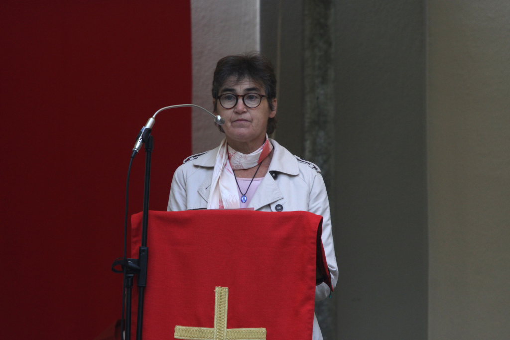 Nach dem Segen mit der Heilig-Blut-Reliquie durch den Provinzial durften sich die Vertreter von politischer und Kirchengemeinde noch an die Gottesdienstbesucher wenden. Bürgermeisterin Alexandra Scherer dankte den Salvatorianern für zwei sehr wichtige Einrichtungen, die sie in den letzten 100 Jahren auf den Weg und zu Aushängeschildern der Stadt gemacht hatten. „Das Heiligblutfest wurde zum wichtigsten Hochfest in der Stadt und das Gymnasium Salvatorkolleg zu einer wichtigten Bildungseinrichtung, deren Strahlkraft weit über die Tore der Stadt hinaus reicht.“