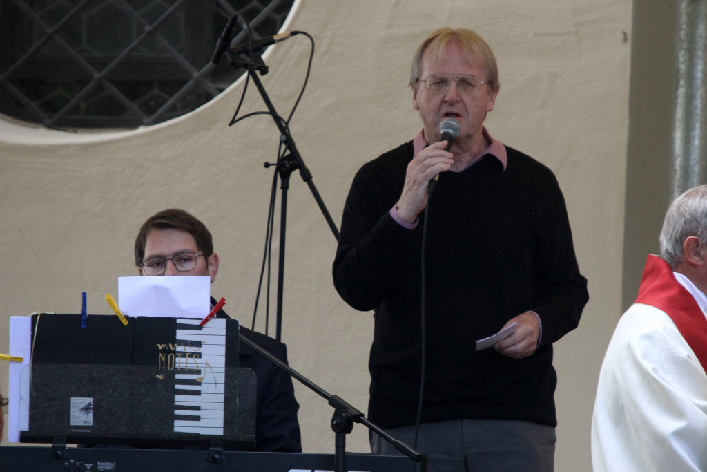 Auch der bekannte Musiker und Komponist Peter Schad, der lange Jahre selbst als Lehrer im Dienste der Salvatorianer gestanden hatte, beteiligte sich mit dem Lied „Wie groß bist Du“ mit einem Beitrag an der musikalischen Gestaltung des Gottesdienstes, die ansonsten von Johannes Tress am Keybord und einer Gesangsgruppe der salvatorianischen Laien getragen wurde.