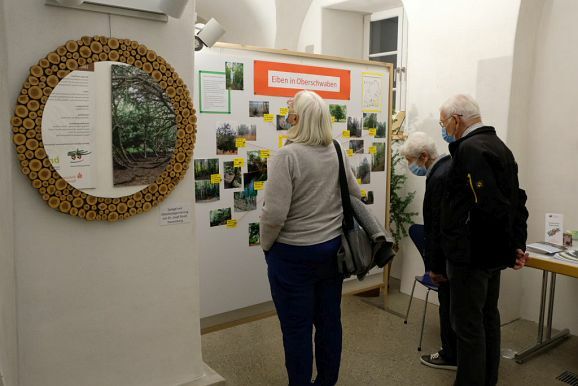 Die Ausstellung, für deren Zustandekommen sich Roth bei den Eibenfreunden, beim Bund Naturschutz Oberschwaben, seinem Team und der Kreissparkasse Ravensburg für das Sponsoring bedankte, zeigt ihre Biologie, Kulturgeschichte und Verbreitung in Oberschwaben sowie die vielseitigen Einsatzmöglichkeiten von Eibenholz im Alltag und in der Kunst.