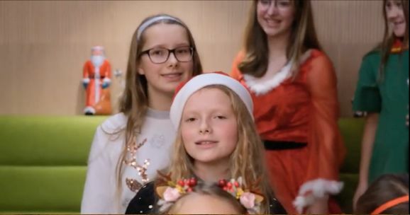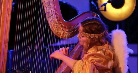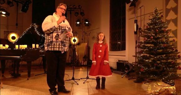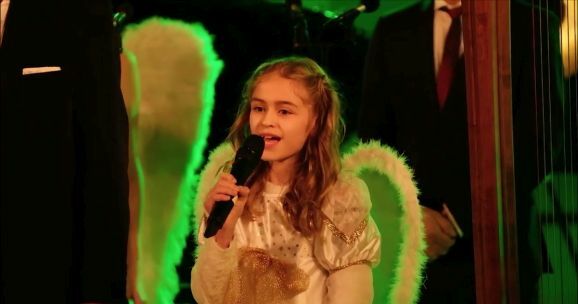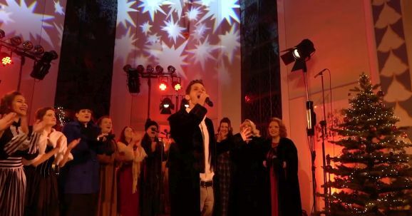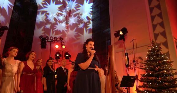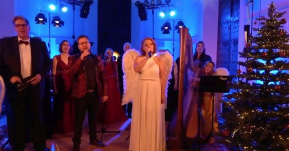 Anna-Lena Storch, als Rauschgoldengel verkleidet, brachte mit ihren „himmlischen“ Harfenklängen sofort die weihnachtliche Atmosphäre in die heimischen Wohnzimmer. Die YoungStars, der musikalische Nachwuchs des Show-Ensembles, präsentierten mit viel Hingabe und leuchtenden Kinderaugen „Christmas Time“ „Die Weihnachtsbäckerei“ und später noch den Klassiker „Jingle Bells“.