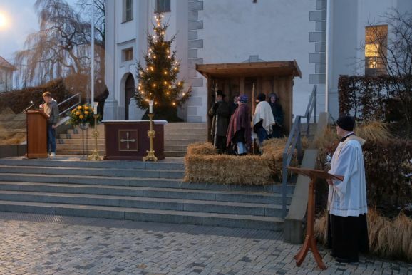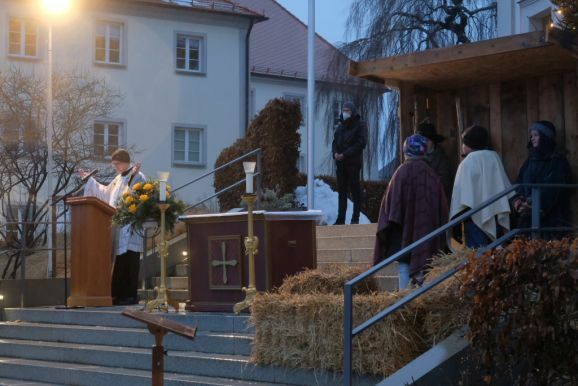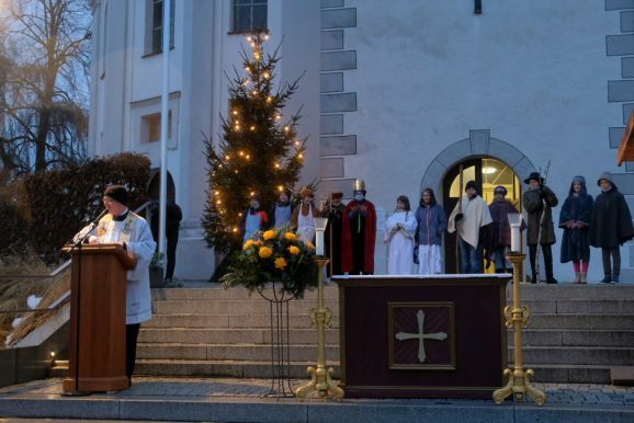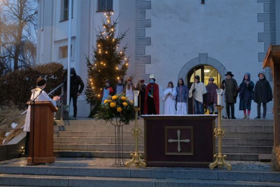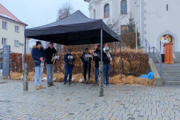 Die Stadtkapelle sorgte mit einem kleinen Bläserensemble für den musikalischen Rahmen, den die Kirchenglocken eröffnet hatten. Den Abschluss bildete natürlich wie bei jedem Gottesdienst an diesem Tag das berühmteste Weihnachtslied „Stille Nacht“.