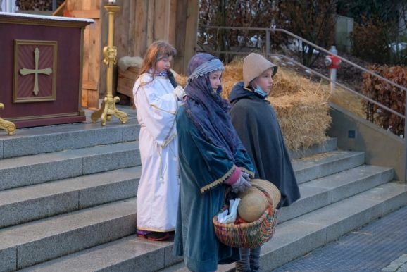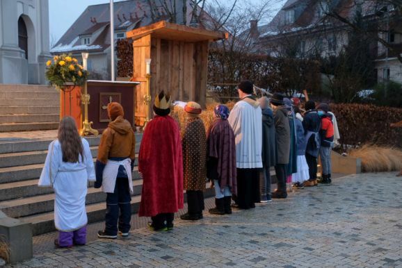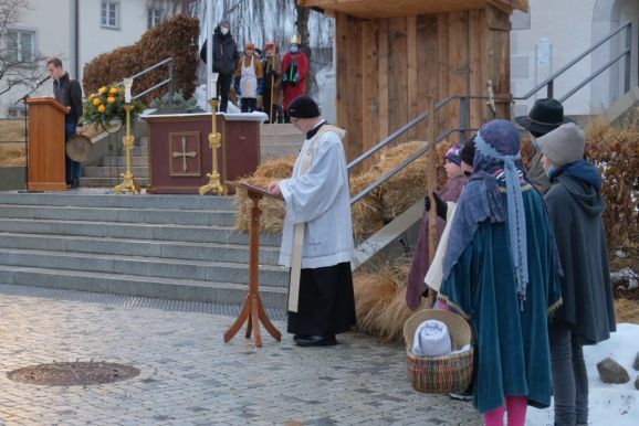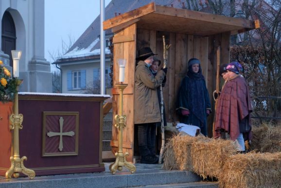 Bad Wurzach - Das Krippenspiel zur Geburt Jesu – frei nach dem Evangelium nach Lukas – wurde in diesem Jahr aufgeführt von den aktuellen Neu-Ministranten, die dies in den letzten Wochen bei ihren Gruppenstunden am Montagnachmittag mit ihren Gruppenleitern eingeübt hatten.