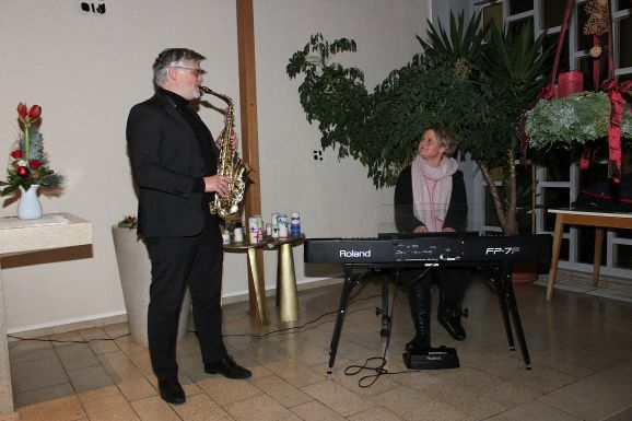 Unter dem Titel „Weihnachtliche Klänge in Text und Ton“ trugen Pfarrerin Silke Kuczera und Prädikantin Astrid Greshake berührende Texte vor, die sich mit der gefühlvollen Musik von Bernadette Vogt am Piano und Markus Vogt am Saxophon abwechselten. So versprach Kuczera zu Beginn „Unsere Liebe zu Gott, zu unseren Mitmenschen und zu uns selbst - das gehört alles zusammen. Dieser Dreiklang soll heute zum Klingen kommen“. Und das tat er - bereits vom ersten Lied an, mit dessen zarten Klängen von „Hört der Engel helle Lieder“ das Ehepaar Vogt die Anwesenden verzauberte.
