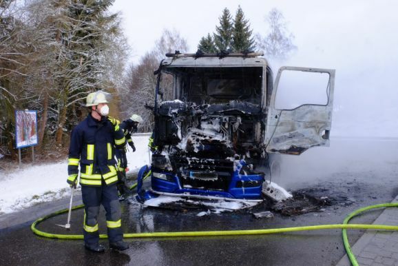 Einige Glutnester loderten in der Folge in der total zerstörten Fahrerkabine noch kurz auf, ehe sich die Polizei, die mit zwei Fahrzeugen im Einsatz war, auf Spurensuche machen konnte.