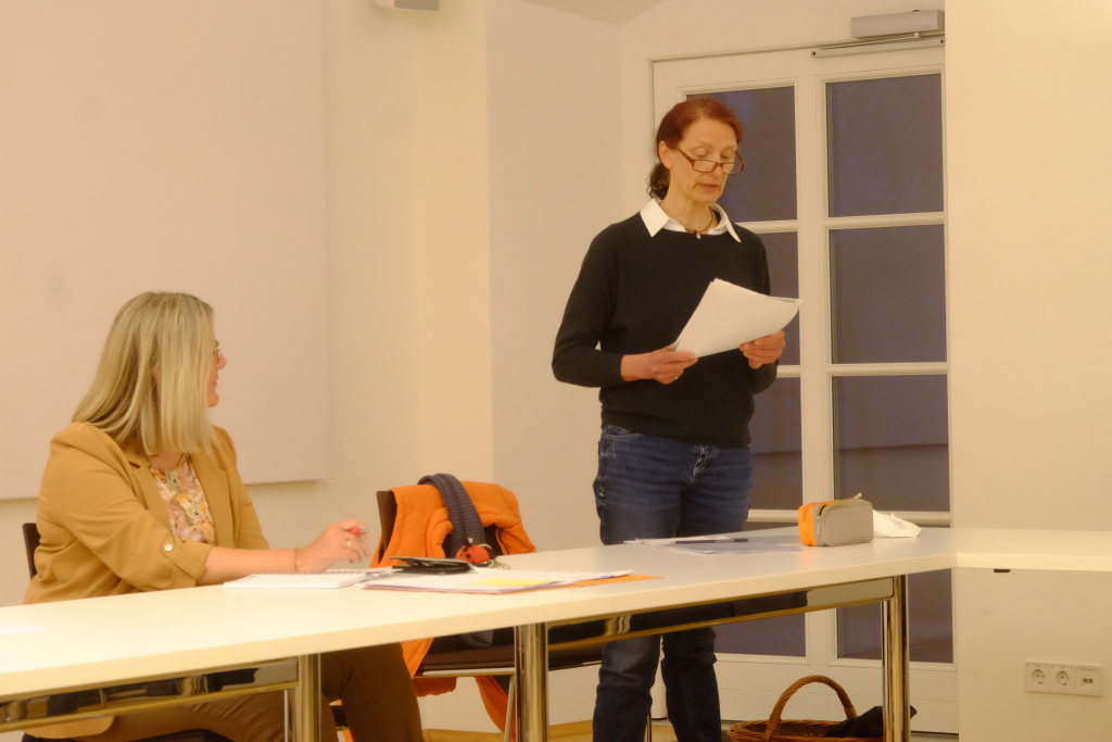 Mit einer Gedenkminute für die verstorbenen Mitglieder, im besonderen Gedenken für das Ende 2020 überraschend verstorbene langjährige Vorstandsmitglied Irmgard Straub, eröffnete Bettina Sgier die Versammlung im Sitzungssaal von Maria Rosengarten.