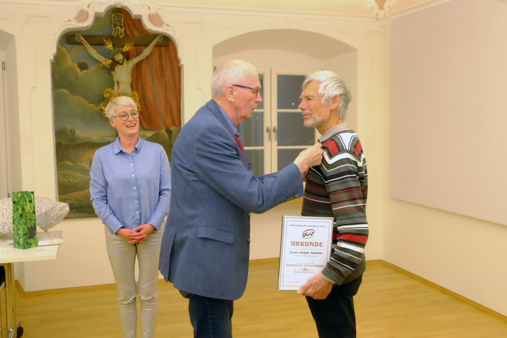 Bevor er jedoch zu den Neuwahlen der Vorstandschaft schreiten konnte, sah die Tagesordnung erst einmal die Ehrung langjähriger Mitglieder durch den Ehrengast des Abends, Erwin Gehring, den Vizepräsidenten des OCV, vor.