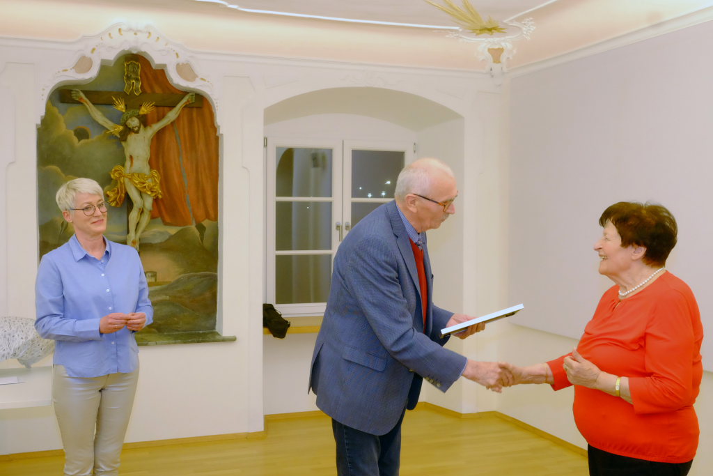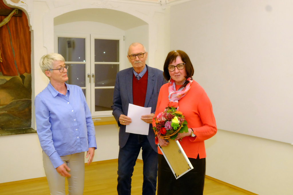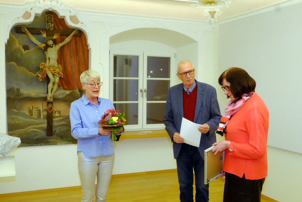 Sopran Gerlinde Häusle, die Zuverlässigkeit in Person und bei jeder Probe dabei, wurde für 50 Jahre aktive Mitgliedschaft im Liederkranz Chorioso ausgezeichnet. Sie ist seit 18 Jahren im Beirat aktiv und hier insbesondere für alle kirchlichen Termine zuständig.