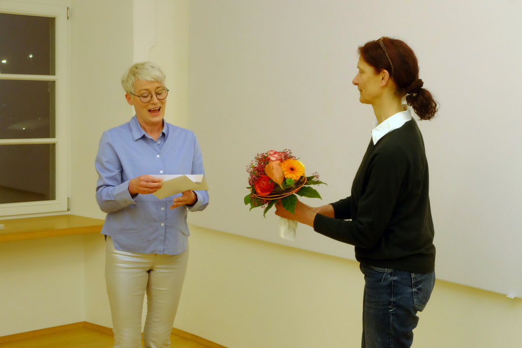Mit dem Gedicht „Zukunft“ leitete Sgier die Verabschiedung von Dirigentin Marianne Müller ein, die insgesamt 10 Jahre die musikalischen Geschicke des Chores bestimmt hatte. Diese dankte allen für diese Zeit und wünschte den Sängerinnen und Sängern viel Erfolg auf ihrem zukünftigen Weg. „Ich denke schon dass Ihr das packt.“