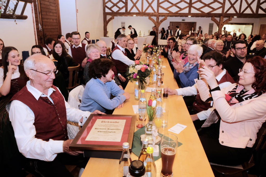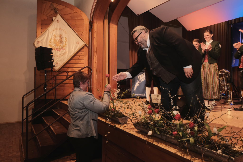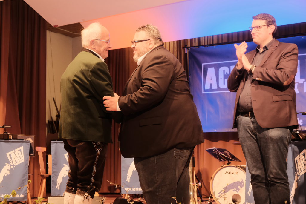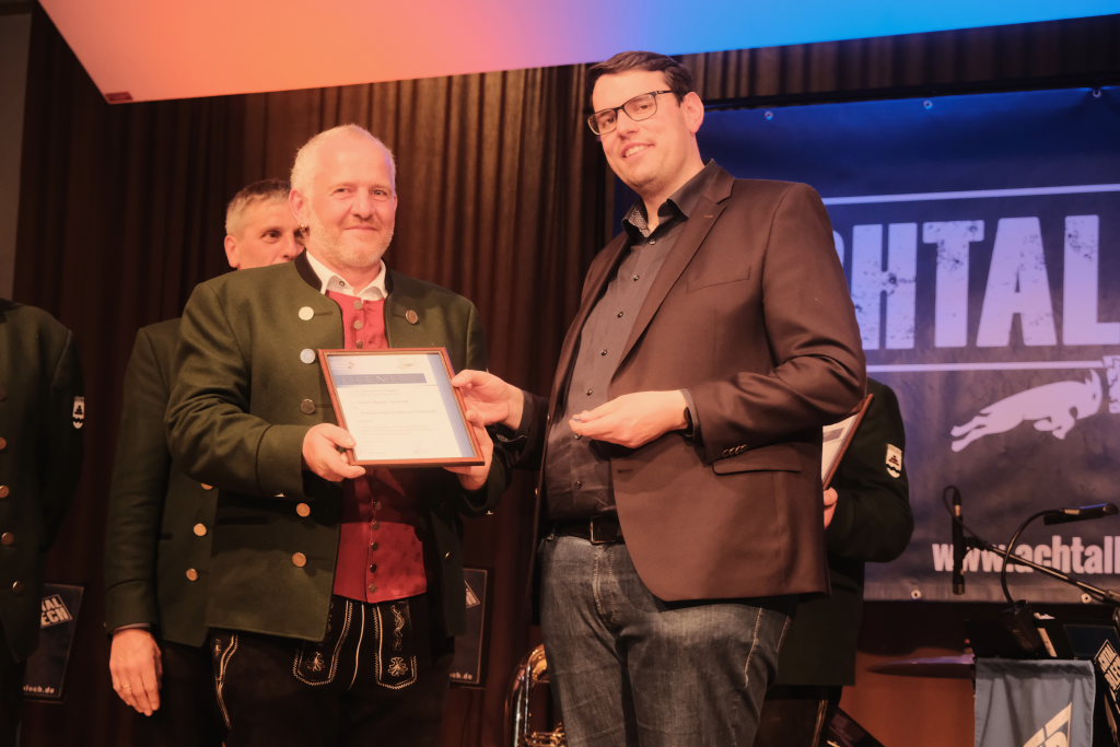 Der Kreisverbandsvorsitzende Rudi Hämmerle sagte, ehe er zu den Ehrungen langjähriger Musiker schritt, dass in der Zeit viele Kapellen gegründet wurden. Und an Bürgermeisterin Scherer gewandt: „Es sind große Fußstapfen, die Ihnen ihr Vorgänger hinterlassen hat, denn während seiner Amtszeit fanden fünf Kreisverbandsmusikfeste statt.“ Er persönlich sei deswegen froh dass sie in Bad Wurzach bleibe. Denn die Bad Wurzacher Jugendmusikschule habe schon eine besondere Stellung im Kreis. „Und sie ist mitverantwortlich für die die großen Erfolge in den Dörfern.“ Er sagte mit Blick auf den Ortsvorsteher:„Wählet den Ma, er hot alles richtig g´macht: Er ist Ortsvorsteher, macht aktiv Musik und er hot a Ravensburgere g´heiroted.“ Zum Vorstand Freddy Holzmüller sagte er: „So oin sott ma klona.“