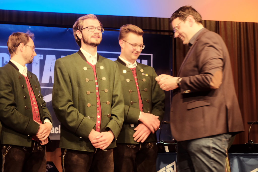 Weitere Highlights, die Butscher aus der Chronik zutage förderte, waren: Dass der Festzeltlieferant sein Zelt für das Musikfest 1995 bereits ein schlappes Jahr zu früh aufbauen wollte. Noch gut in Erinnerung waren den Beiden die Teilnahmen am Oktoberfestumzug: Während Butscher auf der Strecke, die etwa der Länge des Wurzacher Stadtlaufes entspricht, elfmal den Alpenländer intonieren musste – die Leistung verglich er mit den Langstreckenläufern „die würden mit einer Trompete am Mund nicht ins Ziel kommen“ – musste Reichle bei ihrer Teilnahme gar 15mal den Marsch Schloss Leuchtenburg anstimmen.