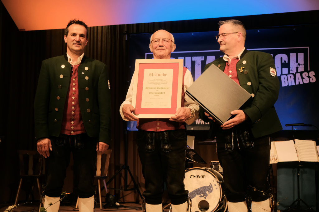 Ziegelbach - Zum Jubiläumsabend "100 Jahre Musikverein Ziegelbach" waren seitens des Blasmusikkreisverbandes mit Chef Rudi Hämmerle, seinem Stellvertreter und für den Bezirk Allgäu verantwortlichen Klaus Wachter sowie der Kreisverbandsdirigent, Markus Frankenhauser, in den Dorfstadel in Ziegelbach gekommen, um zahlreiche Musiker für ihr langjähriges Engagement zu ehren. Corona erforderte es, dass die Jubiläumsveranstaltung um zwei Jahre verschoben werden musste.