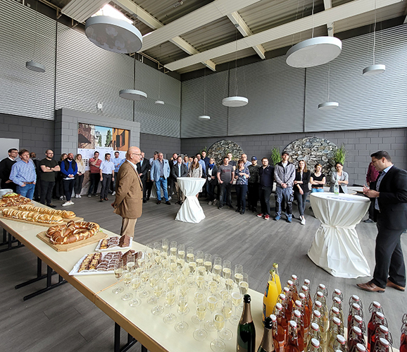 Unsere Bilder zeigen die Verabschiedung von Klaus Kiefer bei einem Festakt; die zwei neuen Geschäftsführer Daniel Keller (links) und Dr. Hinrich Dohrmann (rechts) mit Klaus Kiefer; Klaus Kiefer mit seiner Assistentin Manuela Schlensog vor der Geschenkübergabe; die Enthüllung des Geschenks; der Beschenkte mit seiner Sonnenuhr.