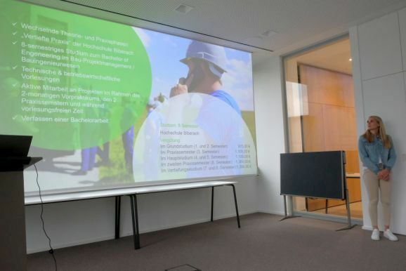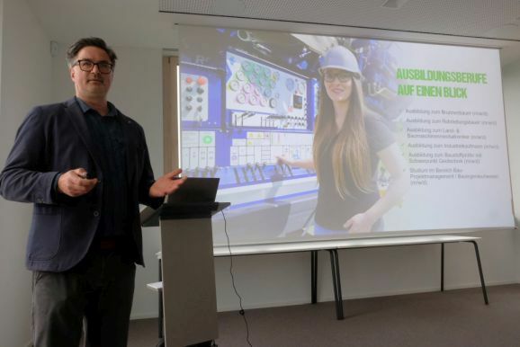 Knepel und Steinhauser stellten insgesamt sechs Ausbildungsberufe vor: Die Ausbildung zum Brunnenbauer, zum Rohrleitungsbauer, zum Bau- bzw. Landmaschinenmechantroniker, zum Industriekaufmann, zum Baustoffprüfer mit Schwerpunkt Geotechnik dauern normalerweise drei Jahre, das Duale Studium im Bereich Projektmanagement bzw. Bauingenieurwesen an der Fachhochschule Biberach vier Jahre.