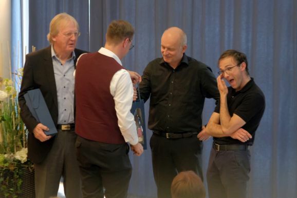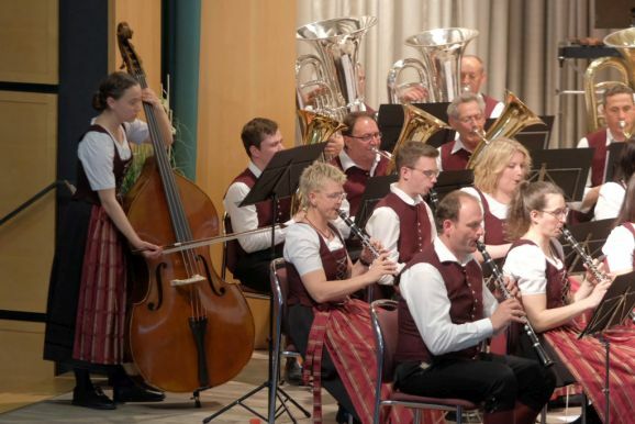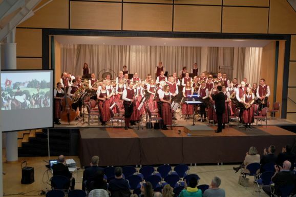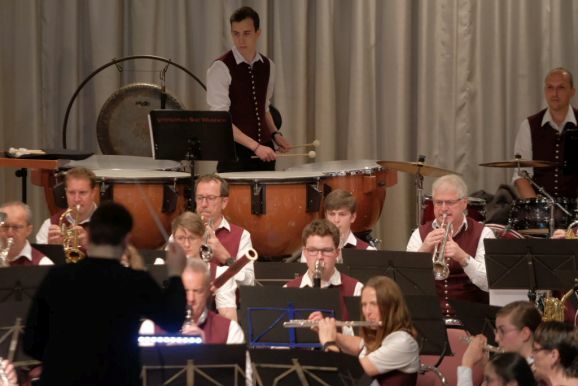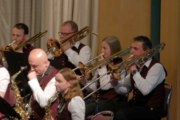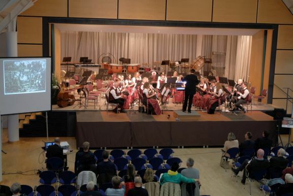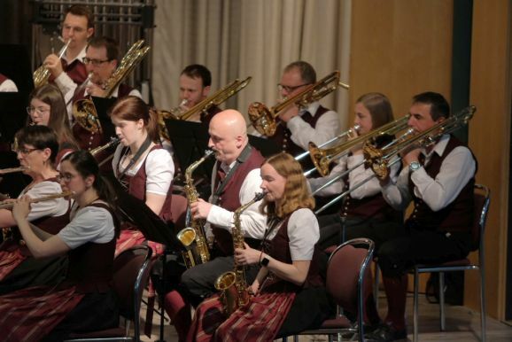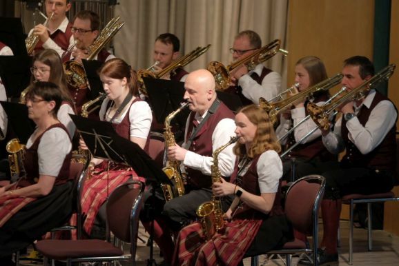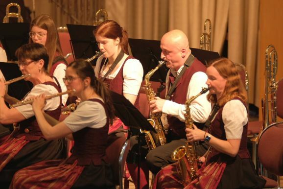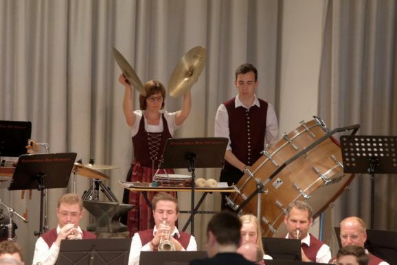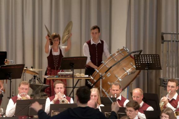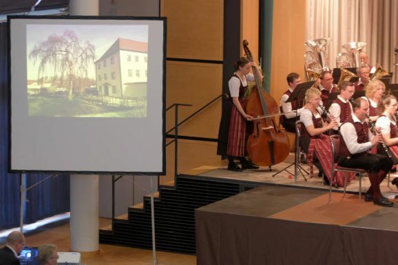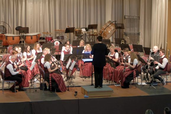 Mit zwei wunderbar flotten Märschen als Zugaben beendete die Stadtkapelle dieses einmalige Konzert. Vorstand Günther Herdrich bedankte sich zwischen den Zugaben mit Präsenten bei den Komponisten, Dirigentin Petra Springer und der Ansagerin Andrea Mall. Ebenfalls ein flüssiges Präsent erhielt Florian Tobisch, der mit Diaschauen die einzelnen Musikstücke optisch unterstützte.